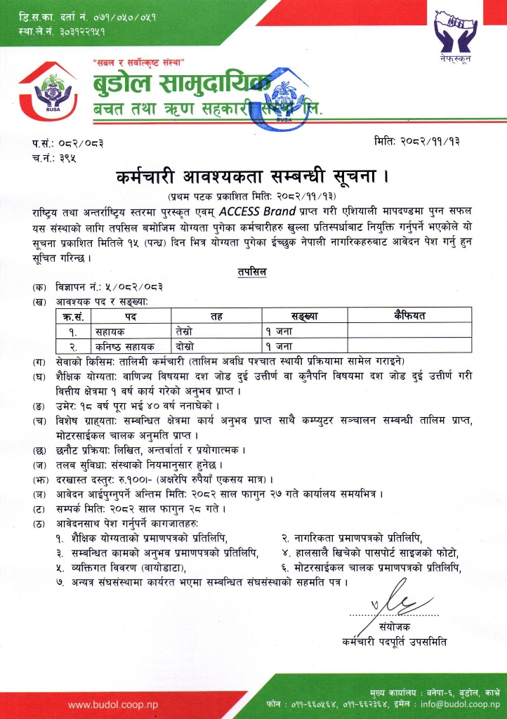 कर्मचारी आवश्यकता सम्बन्धी सूचना ।