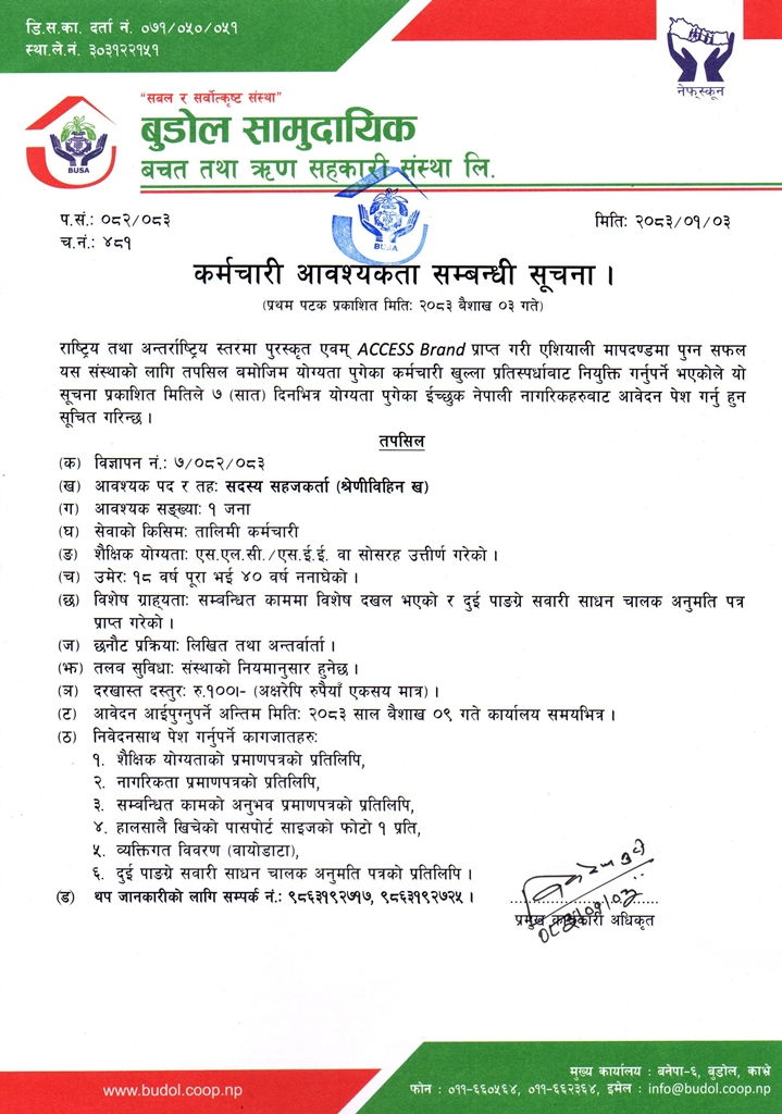 कर्मचारी आवश्यकता सम्बन्धी सूचना ।