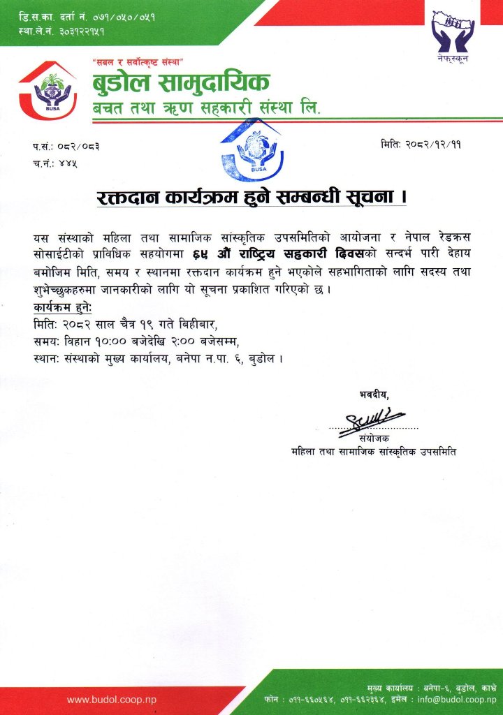 रक्तदान कार्यक्रम हुने सम्बन्धी सूचना ।